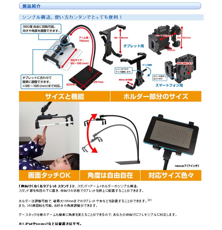 仰向けくねくねタブレットスタンド ブラック GRTBST01 【 ムラウチ